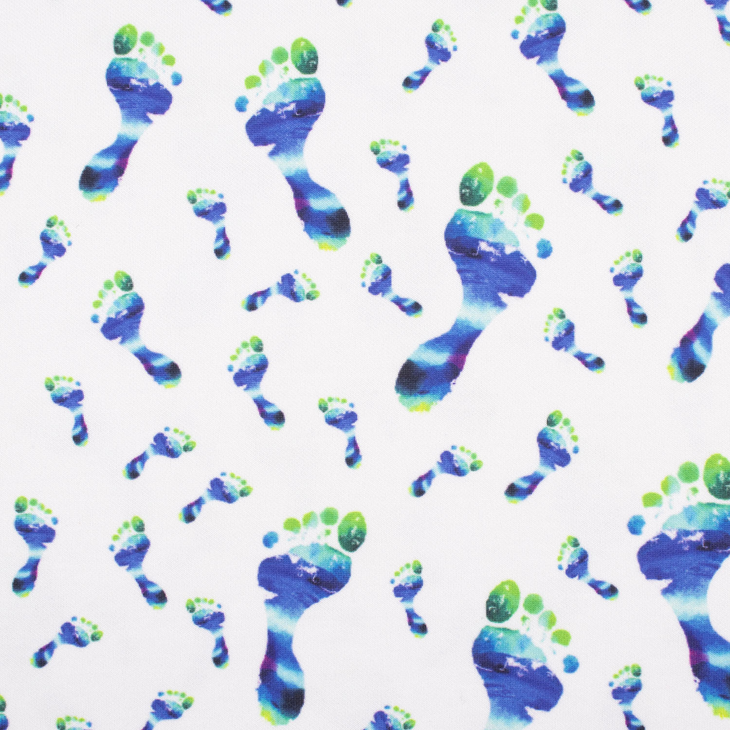 Specjalistyczny, kolorowy czepek medyczny w uniwersalnym rozmiarze. Artystyczny wzór w małe i duże odciski stóp zadba o przyjazną atmosferę w Twoim gabinecie i pozytywne emocje wśród pacjentów. Rozciągliwy, oddychający materiał z certyfikatem OekoTex standard 100 zapewni Ci bezpieczeństwo i komfort pracy na cały dzień.