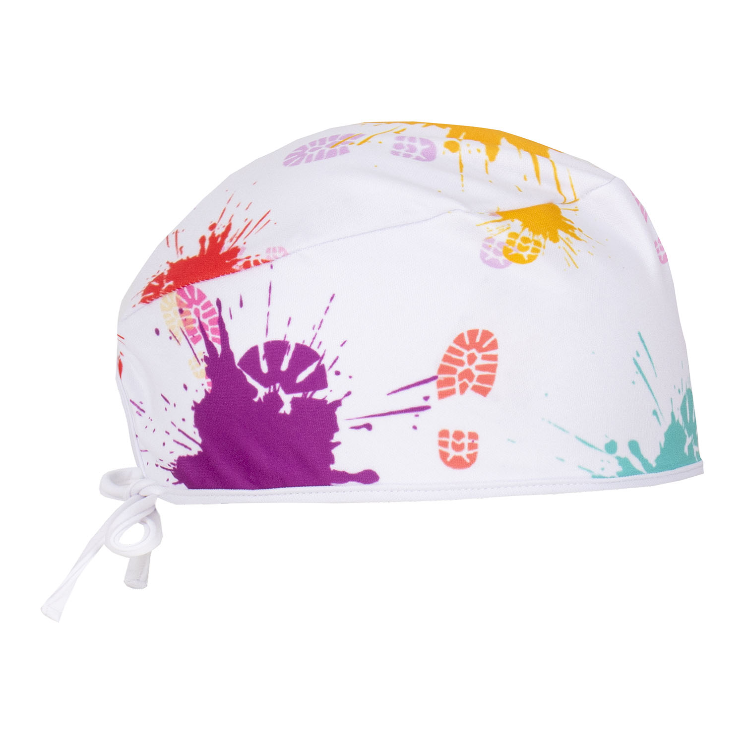 Specjalistyczny, kolorowy czepek medyczny w uniwersalnym rozmiarze. Artystyczny wzór w odciski butów i plamy farby zadba o przyjazną atmosferę w Twoim gabinecie i pozytywne emocje wśród pacjentów. Rozciągliwy, oddychający materiał z certyfikatem OekoTex standard 100 zapewni Ci bezpieczeństwo i komfort pracy na cały dzień.